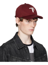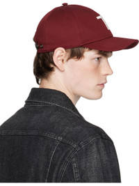 Cotton twill cap. · Logo embroidered at face · Curved brim · Press-stud leather strap at back · Logo stamp at leather strap · Grosgrain browband Supplier color: Oxblood/Cream 100% cotton. Made in Italy 252076M139001