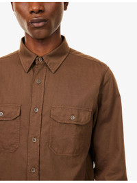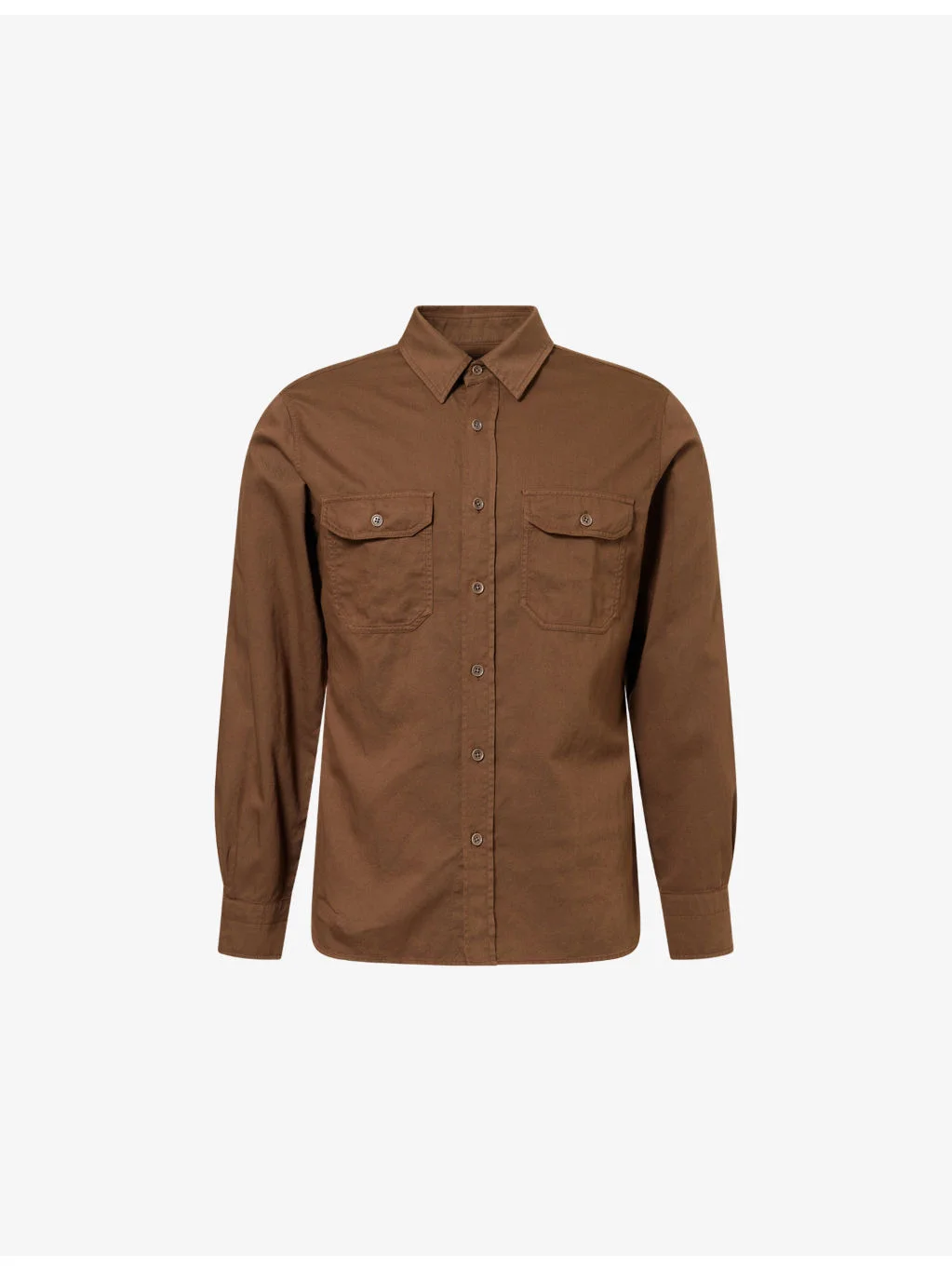 PRODUCT DETAILS - Tom Ford cotton and linen shirt - 64% cotton, 36% linen - Exposed button fastening at front - Spread collar - Buttoned cuffs - Regular fit, collar, long sleeves, two buttoned pockets at front, straight yoke and pleat at back, curved hem - Dry clean - Made in Italy - Size 15.5: length 27in / 70cm, chest 42in / 107cm - Model is 6ft 2in / 1.88m and wears a collar size 15.5 - Lightweight, stretchy Ref: R04550734