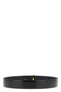 cod. TB247LCL439GNAA Reversible belt in shiny crocodile-effect leather and smooth matte leather, with enameled metal logo buckle. Side A: shiny crocodile-effect leather Side B: smooth matte leather Color: Black Size & Fit: H 4 cm Composition: 100% calfskin leather (Bos Taurus) Made in: Italy PROMO CODE NOT APPLICABLE