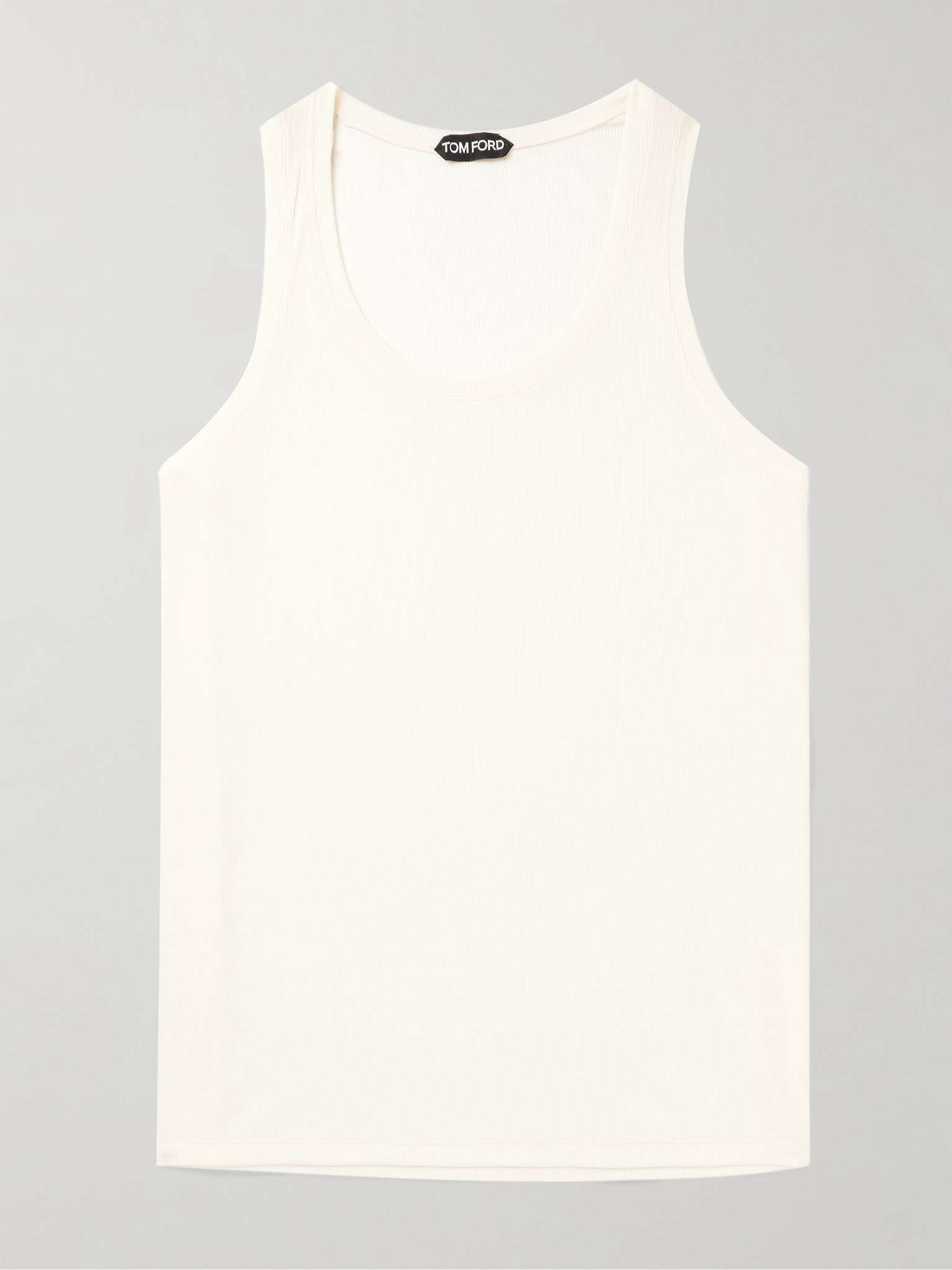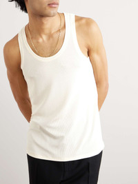 There are countless outfits you could build around TOM FORD's ribbed-knit tank top – try it with tailored trousers and penny loafers, or layer it under a linen suit in the summer. The wide armholes and scoop neck give it an enviably relaxed look. Large to size. See Size & Fit notes. Size & Fit - Fits large to size. Take one size smaller than normal - Designed for a slightly loose fit - Fine knit - Model is shown wearing an IT 44 - Model measures: chest 36"/ 92cm, height 6'1"/ 185cm Details & Care - Ivory ribbed-knit - 95% viscose, 5% elastane - Dry clean