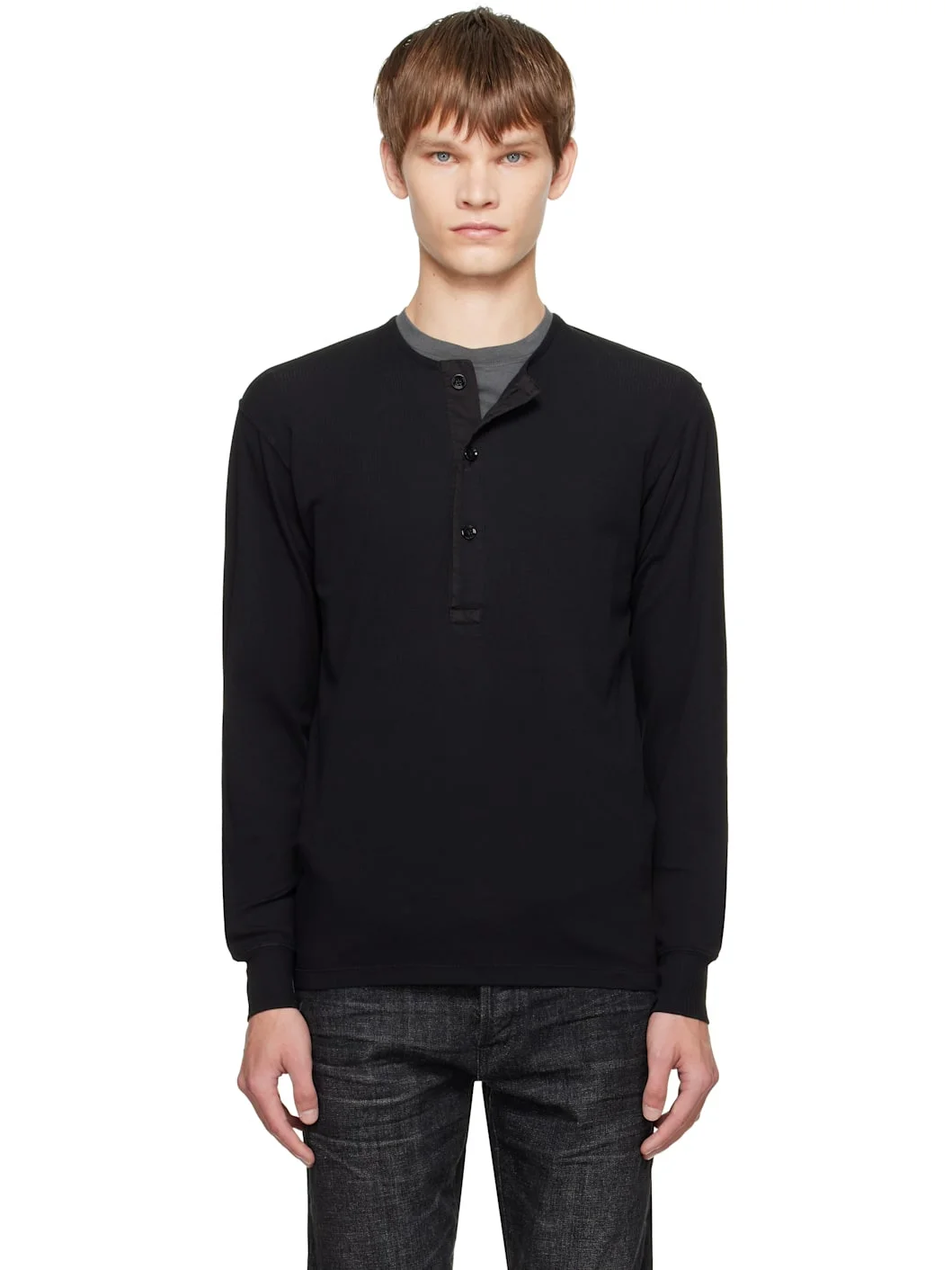 Ribbed stretch cotton jersey henley. · Crewneck · Three-button placket Supplier color: Black Body: 95% cotton, 5% elastane. Trim: 100% cotton. Made in Portugal 252076M211001
