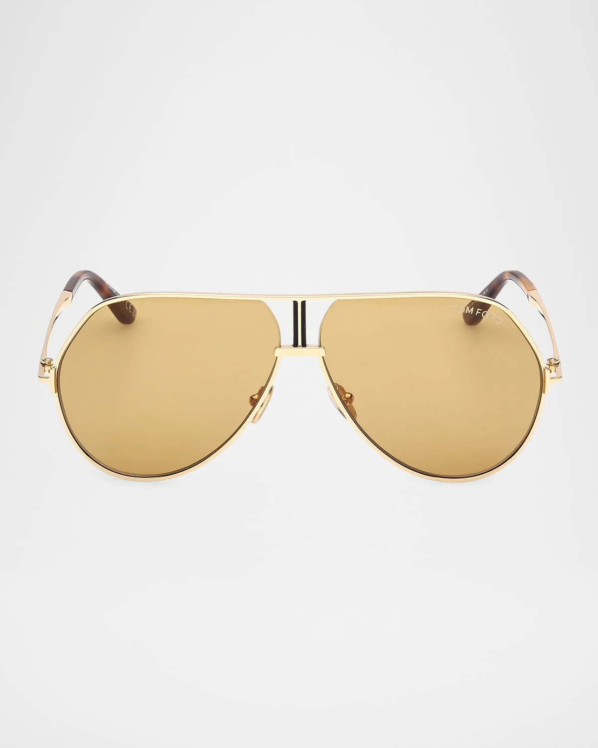 TOM FORD "Rickie-02" aviator sunglasses in luxurious metal Lens/bridge/temple (in mm): 63-10-135 Solid-color lenses Left lens logo script Double-nose bridge Adjustable nose pads Signature metal T temple decoration Thin arms Curved, capped temple tips Metal 100% UVA/UVB protection Made in Italy Proposition 65 warning for California residents