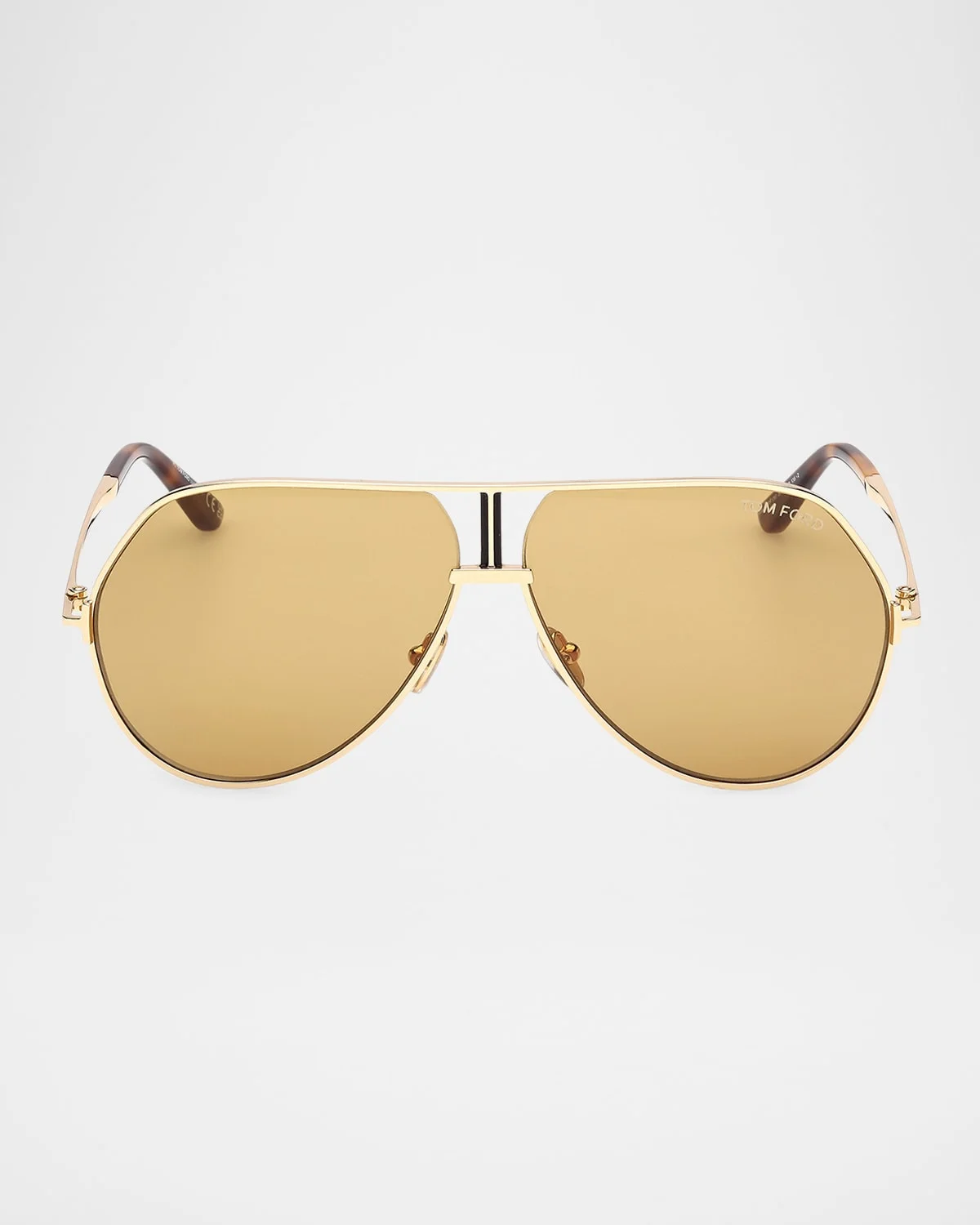 - TOM FORD "Rickie-02" aviator sunglasses in luxurious metal - Lens/bridge/temple (in mm): - 63-10-135 - Solid-color lenses - Left lens logo script - Double-nose bridge - Adjustable nose pads - Signature metal T temple decoration - Thin arms - Curved, capped temple tips - Metal - 100% UVA/UVB protection - Made in Italy - Proposition 65 warning for California residents