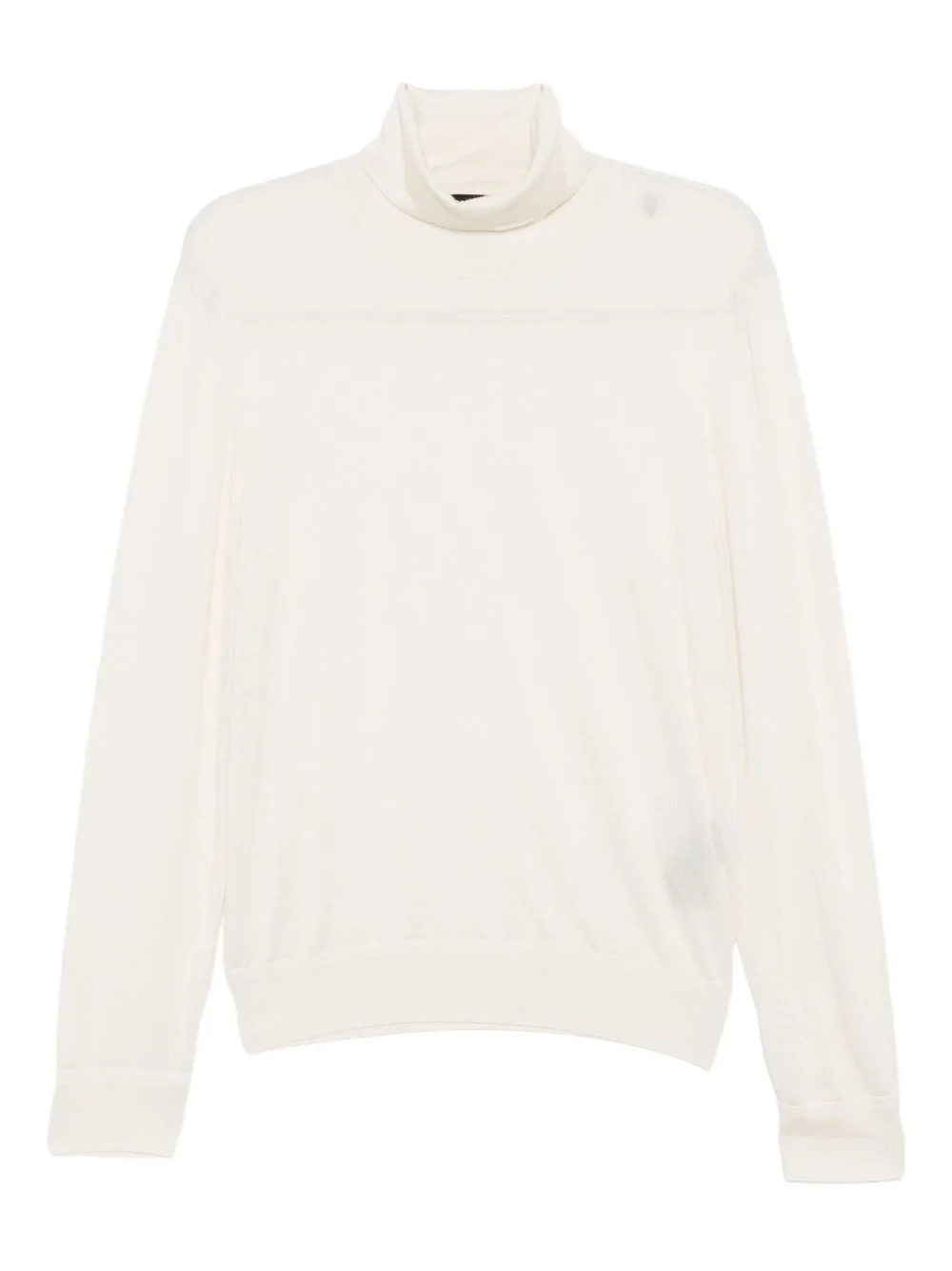 roll-neck knitted top Highlights - Ivory - Roll neck - Long sleeves - Ribbed cuffs and hem Made in Italy Composition Cashmere 70%, Silk 30% Washing instructions Hand Wash