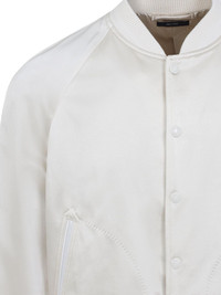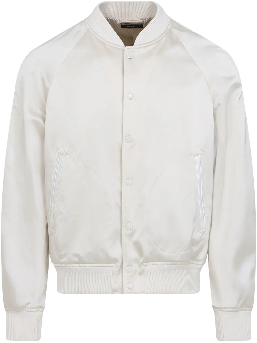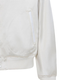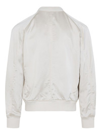 satin bomber jacket Highlights - White - Front press-stud fastening - Two side welt pockets - Long sleeves - Ribbed cuffs and hem Made in Italy Composition Viscose 100% Washing instructions Read Manufacturer Guidelines