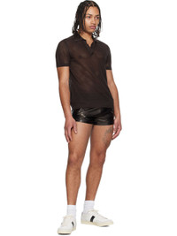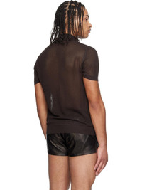 Brown Cotton Silk Mesh S/S Buttonless Polo