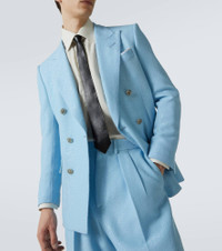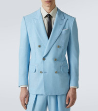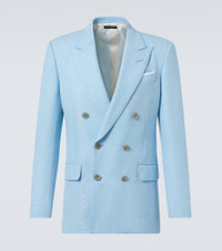 It's time to shine in this double-breasted blazer. The design is made from a fine wool blend and embellished with allover sequins, infusing a dose of Tom Ford's signature glamour. Product Details - Material: 79% wool, 21% polyester - Care instructions: dry clean - Made in Italy - Designer color name: Light Blue - Item color: blue - Item number: P01060304 Size & Fit - True to size - Shoulder pad inserts - Slim fit - Non-stretchy fabric - Falls below the hip - The model in the picture is 185cm-6'1" and wearing a size IT 50