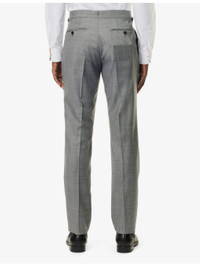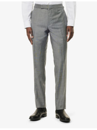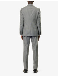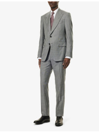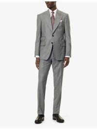 PRODUCT DETAILS - Tom Ford wool suit - 100% wool; lining 59% cupro, 41% silk; sleevelining 100% cupro - Exposed button fastenings at front - Jacket: - Regular fit, peak lapels, single-breasted, padded shoulders, long sleeves, cuff slits welt pocket at chest, three flap pockets at front, dual vents at back, four slip pockets at interior, lined - Unfinished hems, ready for tailoring - Trousers: - Regular fit, mid rise, slight tapered leg, waist adjusters at sides, branded hardware, two slip pockets at sides, pressed centre pleats at front and back, two buttoned jetted pockets at back, partially lined - Unfinished hems, ready for tailoring - Specialist dry clean only - Made in Italy - Jacket size UK 40: length 32in / 81cm, chest 40in / 102cm - Trousers size UK 40: rise 11in / 28cm, inside leg 36in / 91cm, leg opening 14in / 36cm - Model is 6ft 2in/1.88m and wears a size UK 40 - Midweight, non-stretch - Please note that altered garments cannot be returned in-store or online Ref: R04385135