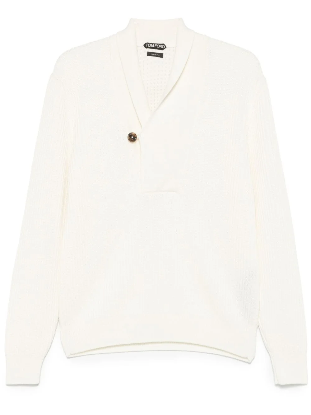 shawl collar sweater Highlights - White - Front button fastening - Long sleeves Made in Italy Composition Wool 70%, Silk 30% SIZE & FIT Model measurements Height 6 ft 2 in(1.87 m) Bust/Chest 37.79 in(96 cm) Hips 37.79 in(96 cm) Waist 30.31 in(77 cm) FittingInformation Designed for a relaxed fit, this piece allows for comfort and movement when worn The ribbed hem offers a close, comfortable fit Made with a midweight knit, this piece offers some stretch