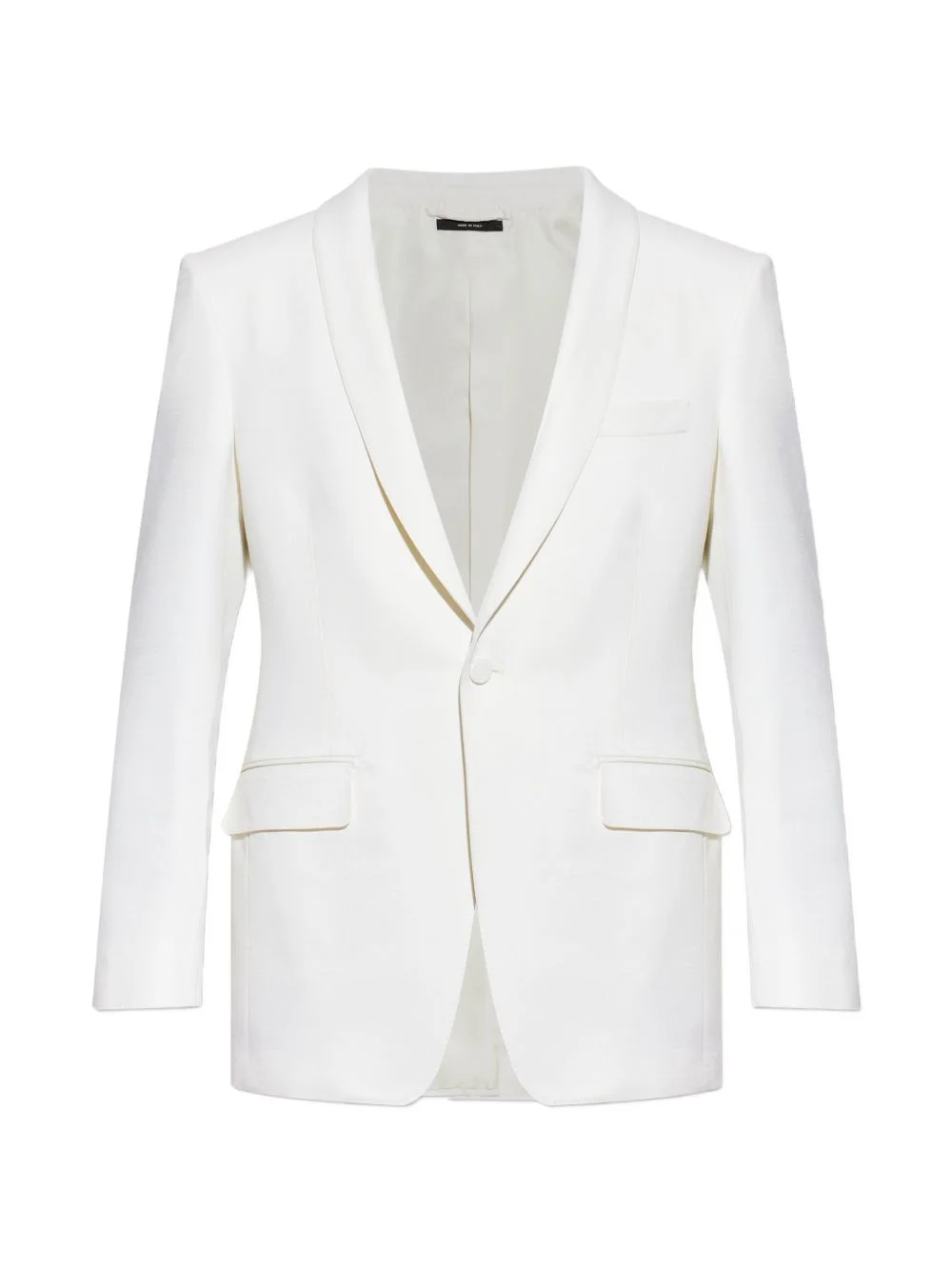 shawl-lapel pocket blazer Highlights - White - Shawl lapel - Front button fastening - Chest welt pocket - Front flap pockets - Buttoned cuffs Made in Italy Composition Lining: Cupro 59%, Silk 41% Outer: Wool 83%, Silk 17% Washing instructions Read Manufacturer Guidelines
