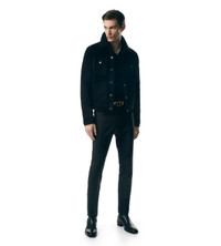 - SHEARLING TRIM TRUCKER - FULLY LINED ICON SHEARLING TRIM TRUCKER - DIAMOND QUILTED INNER LINING - CLASSIC FIT - NATURAL SHEARLING COLLAR - CONCEALED ZIP THROUGH - TOM FORD SIGNATURE PRESS STUD FASTENING ALONG FRONT OPENING, CUFFS, AND CHEST POCKETS - TOM FORD SIGNATURE LEATHER GRAB HANDLE - CENTRE BACK LENGTH 60CM - 100% CALF LEATHER - MADE IN ITALY