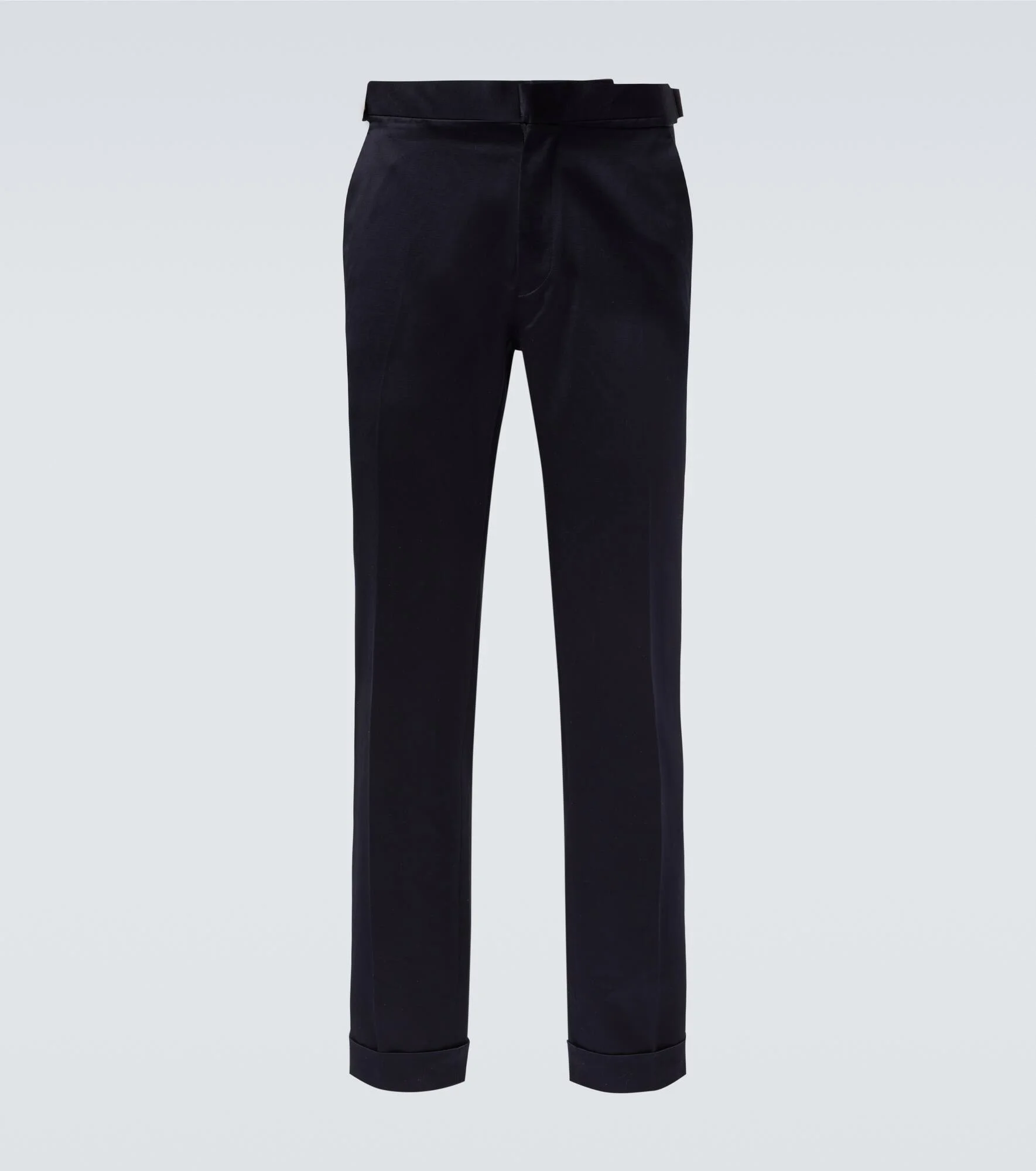 Tom Ford’s tailoring showcases meticulous attention to detail with a dose of unmistakable sophistication. Made from cotton satin, the Shelton suit pants come in a slim silhouette and feature multiple pockets. Product Details - Material: 100% cotton - Care instructions: do not wash - Made in Italy - Designer color name: Navy - Item color: blue - Item number: P01042752 Size & Fit - Fits small to size - we recommend trying one size larger - Non-stretchy fabric - Straight leg - Unhemmed for tailoring - The model in the picture is 185cm-6'1" and wearing a size 52