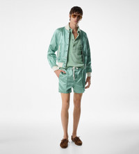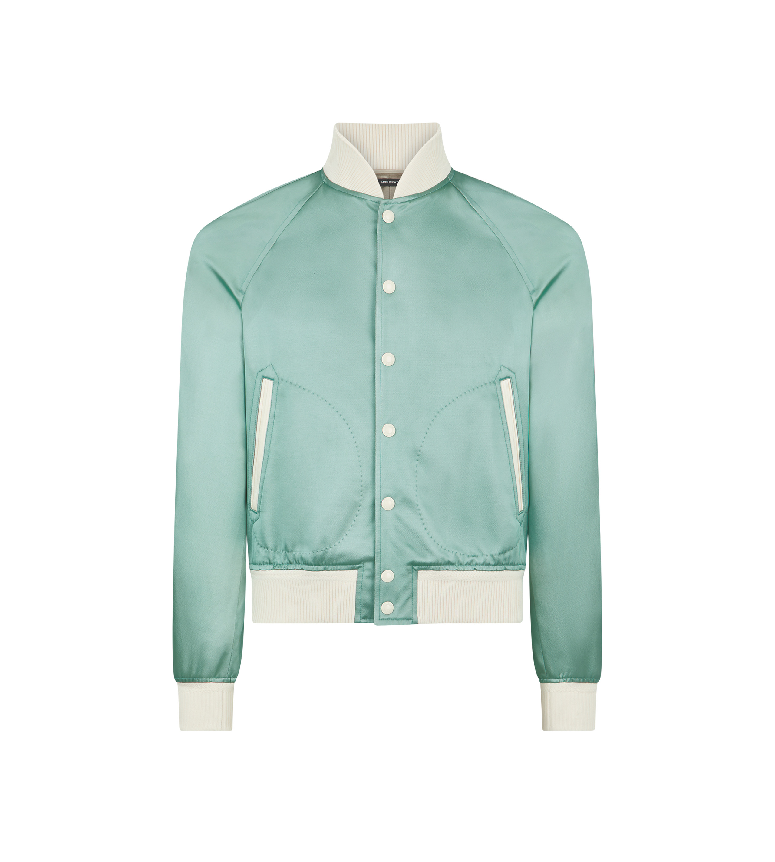 SHINY RAYON SATIN BOMBER WITH CONTRAST PIPING