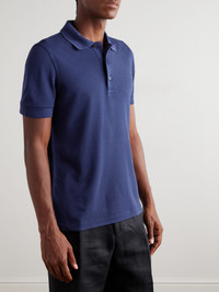 TOM FORD's polo shirt is made from pique that's knitted from a Lyocell and cotton-blend, which makes it exceptionally soft, smooth and breathable. It's finished with elegant mother-of-pearl buttons and a discreet logo embroidery by the hem. Size & Fit - Fits true to size. Take your normal size - Designed for a slim fit - Lightweight, slightly stretchy fabric - Model is shown wearing an IT 48 - Model measures: chest 38"/ 96cm, height 6'1"/ 185cm Details & Care - Navy Lyocell and cotton-blend pique - Button fastenings - 67% Lyocell, 33% cotton - Dry clean - Mother-of-pearl: Australia