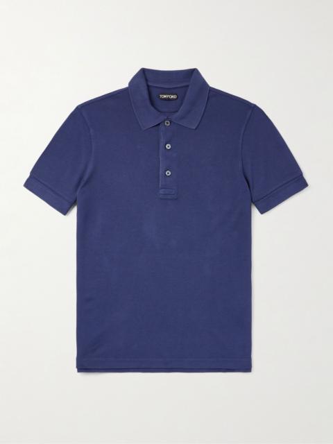 Slim-Fit Lyocell and Cotton-Blend Piqué Polo Shirt Navy