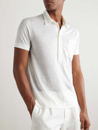 With its lightweight handle and naturally breathable properties, TOM FORD's polo shirt is a warm-weather staple. It's made from a smooth silk and linen-blend and has an elongated placket that fastens with mother-of-pearl buttons. Size & Fit - Fits true to size. Take your normal size - Those with broad shoulders may wish to take the next size up - Designed for a slim fit - Lightweight, stretchy fabric - Model is shown wearing an IT 48 - Model measures: chest 38"/ 96cm, height 6'2"/ 188cm Details & Care - White silk and linen-blend - Button fastenings - 52% silk, 48% linen - Dry clean - Mother-of-pearl: Australia