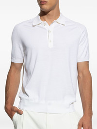 short-sleeved polo shirt Highlights - White - Front button placket - Polo collar - Ribbed trim Made in Italy Composition Wool 98%, Elastane 1%, Polyamide 1% Washing instructions Read Manufacturer Guidelines