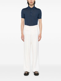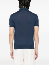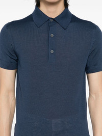short-sleeved polo shirt Highlights - Midnight blue - Short front button fastening - Short sleeves - Ribbed cuffs and hem Made in Italy Composition Cashmere 70%, Silk 30% SIZE & FIT Model measurements Height 6 ft 2 in(1.87 m) Bust/Chest 33.07 in(84 cm) Hips 35.43 in(90 cm) Waist 26.77 in(68 cm) FittingInformation Designed for a regular fit, this polo shirt offers a comfortable loose fit throughout the body The ribbed hem offers a close, comfortable fit Made with a lightweight knit, this piece offers some stretch