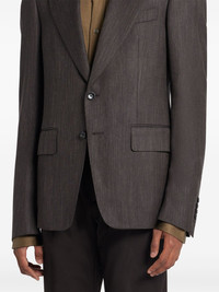 single-breasted blazer Highlights - Chocolate brown - Front button fastening - Peak lapels - Two side flap pockets - Long sleeves Made in Italy Composition Outer: Buffalo Horn 100%, Wool 71%, Silk 15%, Linen/Flax 14% Lining: Cupro 50%, Silk 50%