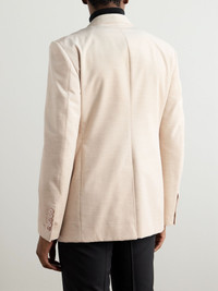 TOM FORD is a sure bet when it comes to anything black tie. This blazer will turn heads at your next event – it's made from ivory cotton-velvet and tailored in a single-breasted profile with wide peak lapels and strong, structured shoulders. Forego a pocket square and make it the focal point of your outfit. Size & Fit - Those with broad shoulders may wish to take the next size up - Tailored for a slim fit - Internal shoulder pads - Mid-weight, non-stretchy fabric - Model is shown wearing an IT 50 - Model measures: chest 38"/ 96cm, height 6'0"/ 183cm Details & Care - Ivory cotton-velvet - Peak lapels, functioning buttoned cuffs, chest welt pocket, two front flap pockets, single vent, two internal buttoned pockets, fully lined - Two button fastenings - 100% cotton; lining1: 100% viscose; lining2: 100% cupro - Dry clean - Mother-of-pearl: Indonesia