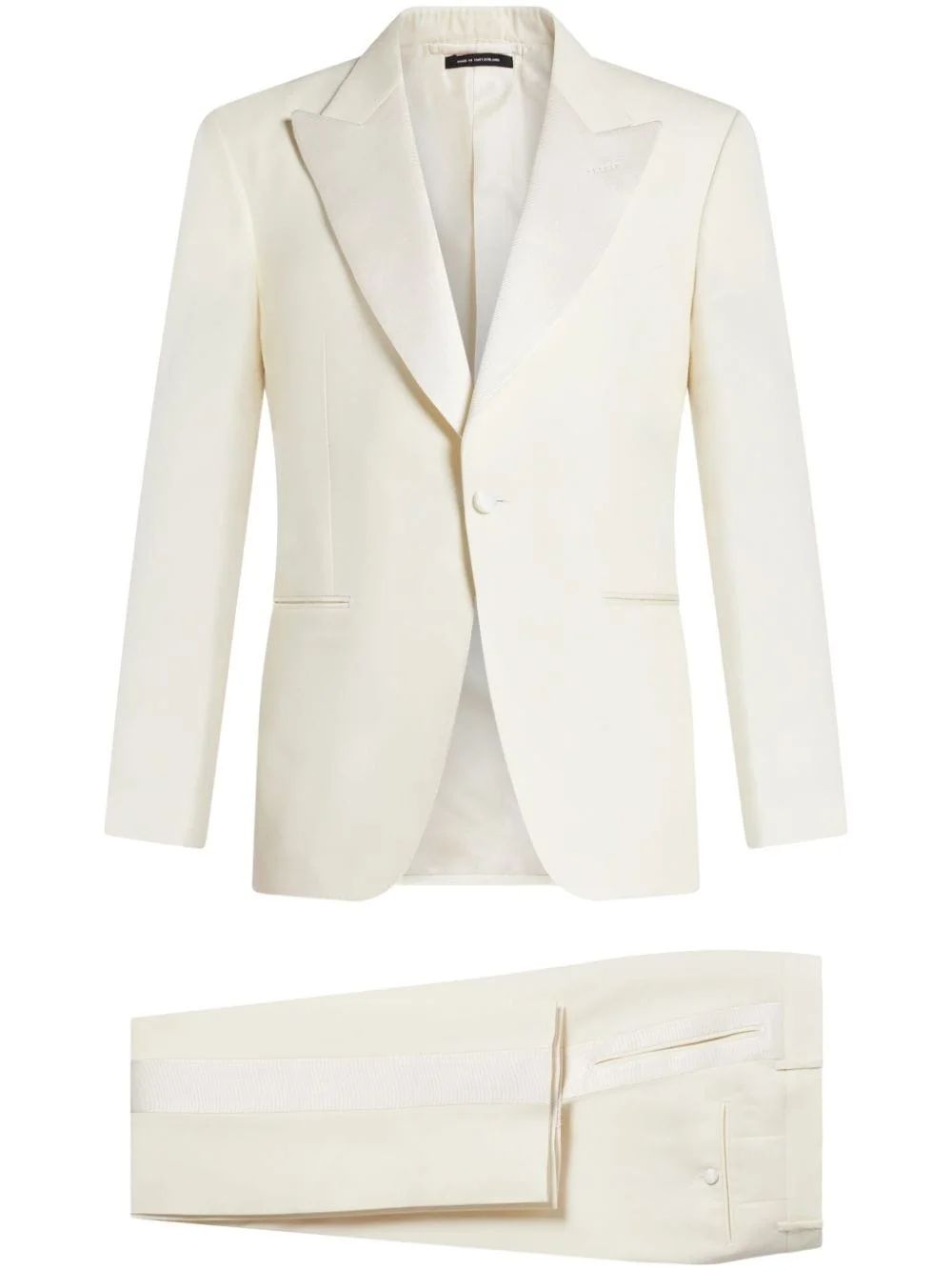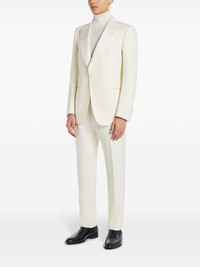single-breasted blazer Highlights - Ivory white - Wool blend - Front button fastening - Notched lapels - Two side flap pockets - Long sleeves - Straight hem Made in Italy Composition Outer: Mother of Pearl 100%, Wool 70%, Silk 30% Lining: Cotton 100%, Cupro 50%, Silk 50%