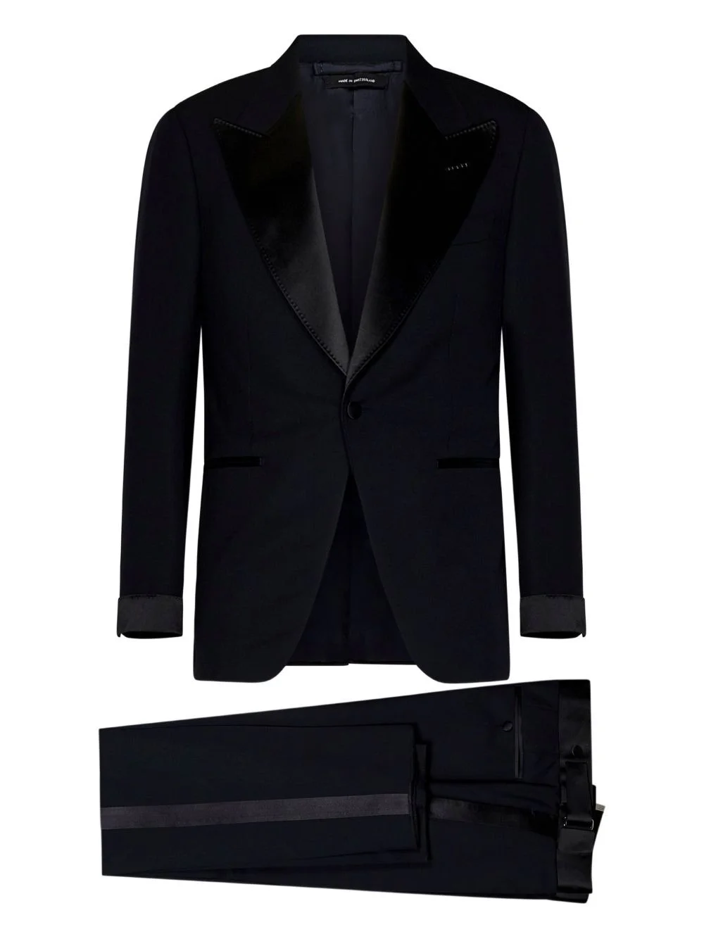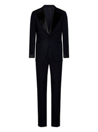 single-breasted wool suit Highlights - Midnight blue - Front button fastening - Contrasting lapels - Two side flap pockets - Straight leg Imported Composition Outer: Wool 100% Lining: Cupro 100% Washing instructions Read Manufacturer Guidelines