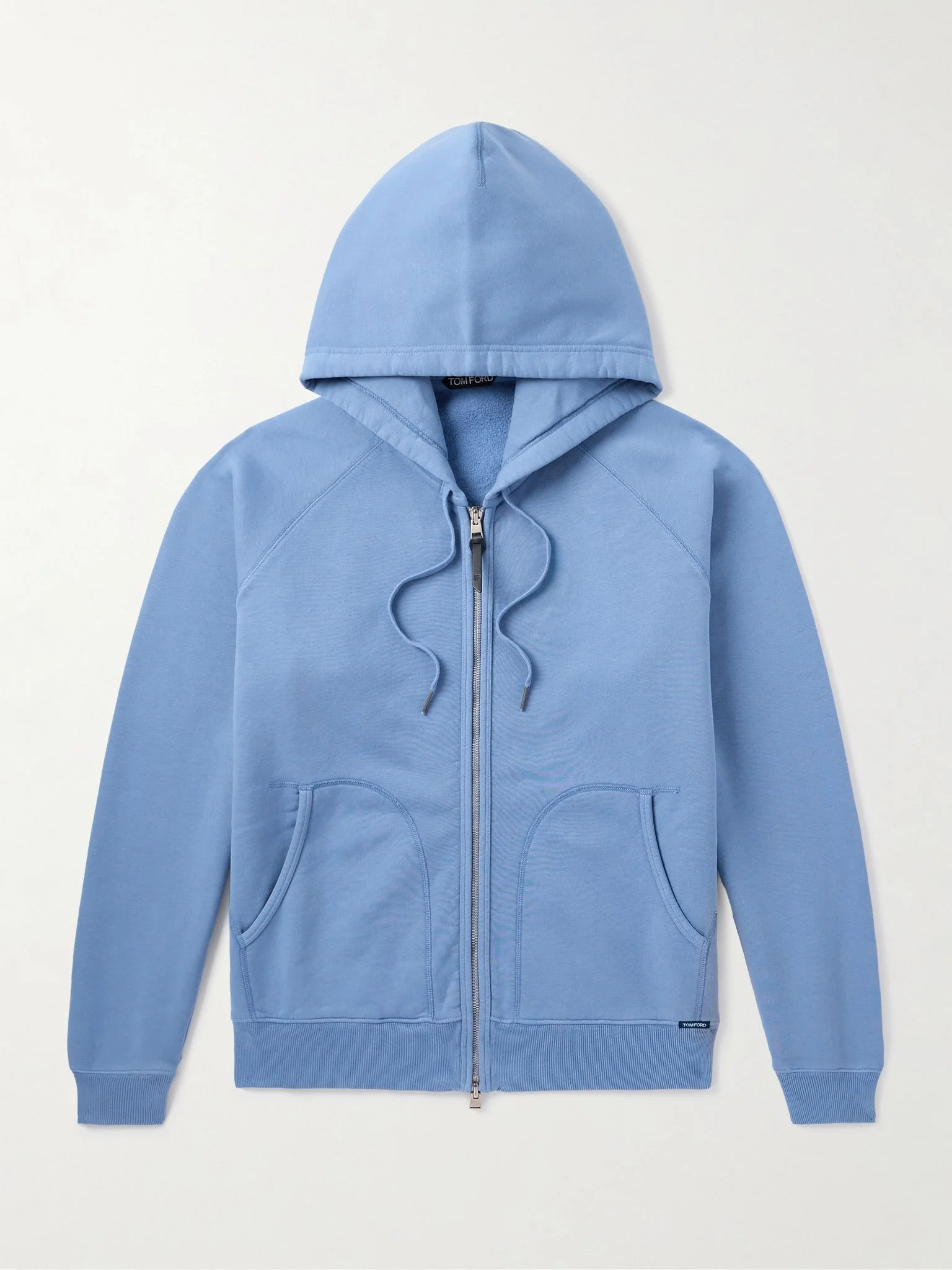 Slim-Fit Cotton-Jersey Zip-Up Hoodie Blue