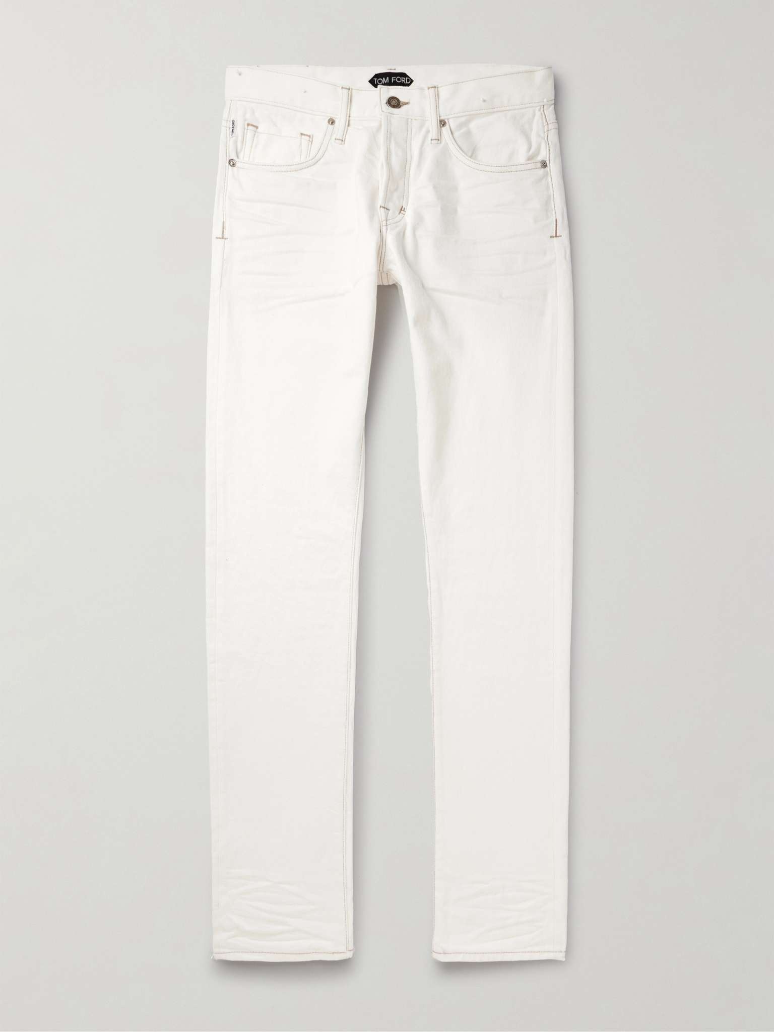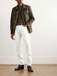 Once you've tried them, white jeans aren't as adventurous as they let on. TOM FORD's slim-fit pair is cut from selvedge denim imbued with a touch of stretch and will work with all sorts of shirts and sweaters. Size & Fit - Fits true to size. Take your normal size - Skinny leg, low-rise style - Mid-weight, non-stretchy fabric - Model is shown wearing a 32 - Model measures: waist size 32, height 6'0"/ 183cm Details & Care - Chalk denim - Button fastenings - 98% cotton, 2% polyurethane - Machine wash