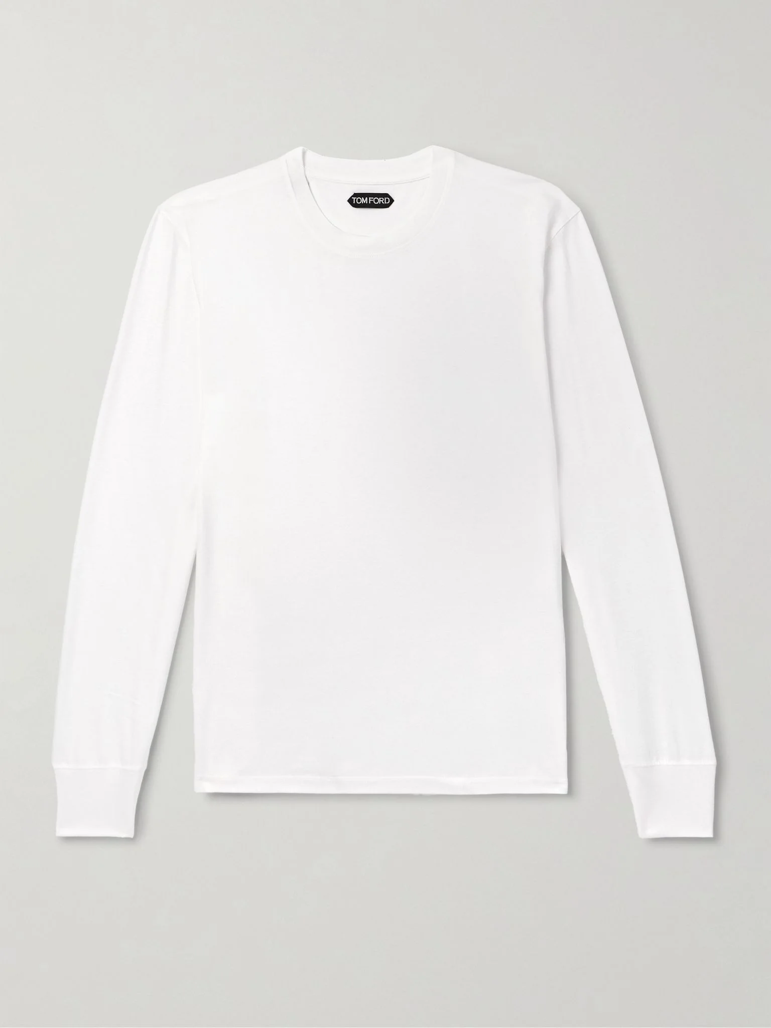 TOM FORD champions premium fibres and timeless design, both of which are apparent in this T-shirt. It's cut in a classic shape from Lyocell and cotton-blend jersey, a combination that enhances breathability and helps resist pilling. Size & Fit - Fits true to size. Take your normal size - Designed for a slightly loose fit - Lightweight, slightly stretchy fabric - Model is shown wearing an IT 48 - Model measures: chest 38"/ 96cm, height 6'1"/ 185cm Details & Care - White Lyocell and cotton-blend jersey - 67% Lyocell, 33% cotton - Dry clean