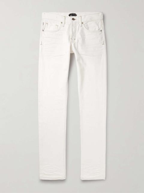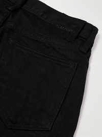 EXCLUSIVE AT MR PORTER. TOM FORD's jeans subtly draw inspiration from all-American Western style. Cut from selvedge denim, they have a slim-leg profile and a leather logo patch at the waistband. Wear yours with boots and a leather jacket. Size & Fit - Fits true to size. Take your normal size - Those with muscular thighs may wish to take the next size up - Slim cut, mid-rise style - Mid-weight, non-stretchy fabric - Model is shown wearing a 32 - Model measures: waist size 32, height 6'1"/ 185cm Details & Care - Black denim - Button fastenings - 98% cotton, 2% elastane; lining: 100% cotton - Machine wash
