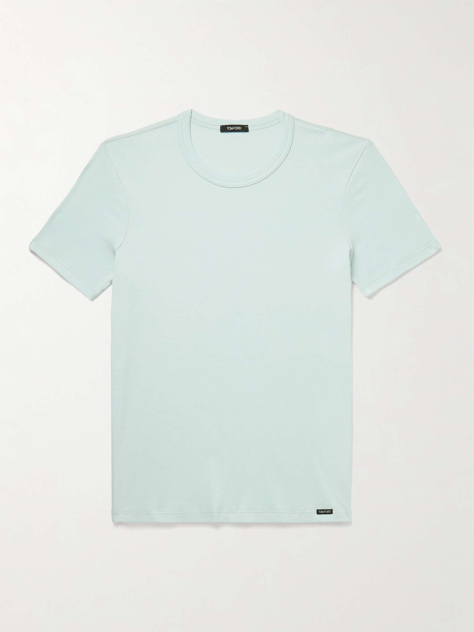 TOM FORD's T-shirt is made from cotton-jersey with a touch of stretch, so it's especially comfortable. It's topped with a thick crewneck. Size & Fit - Fits true to size. Take your normal size - Those with broad shoulders may wish to take the next size up - Designed for a slim fit - Lightweight, stretchy fabric - Model is shown wearing a M - Model measures: chest 38"/ 96cm Details & Care - Mint stretch-cotton jersey - 95% cotton, 5% elastane - Hand wash - Designer colour: Pale Mint