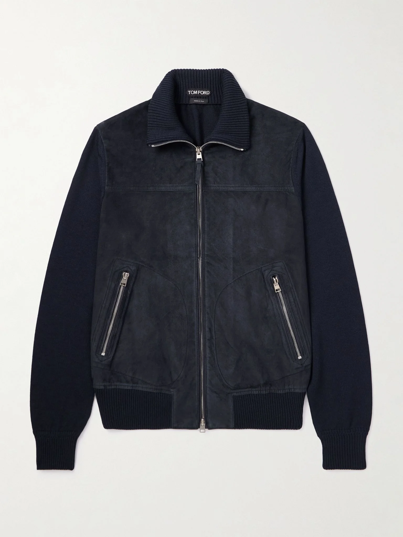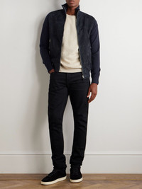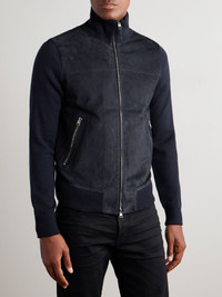 Slim-Fit Suede and Merino Wool and Cashmere-Blend Jacket Navy