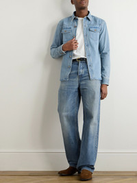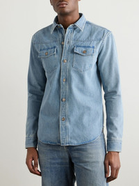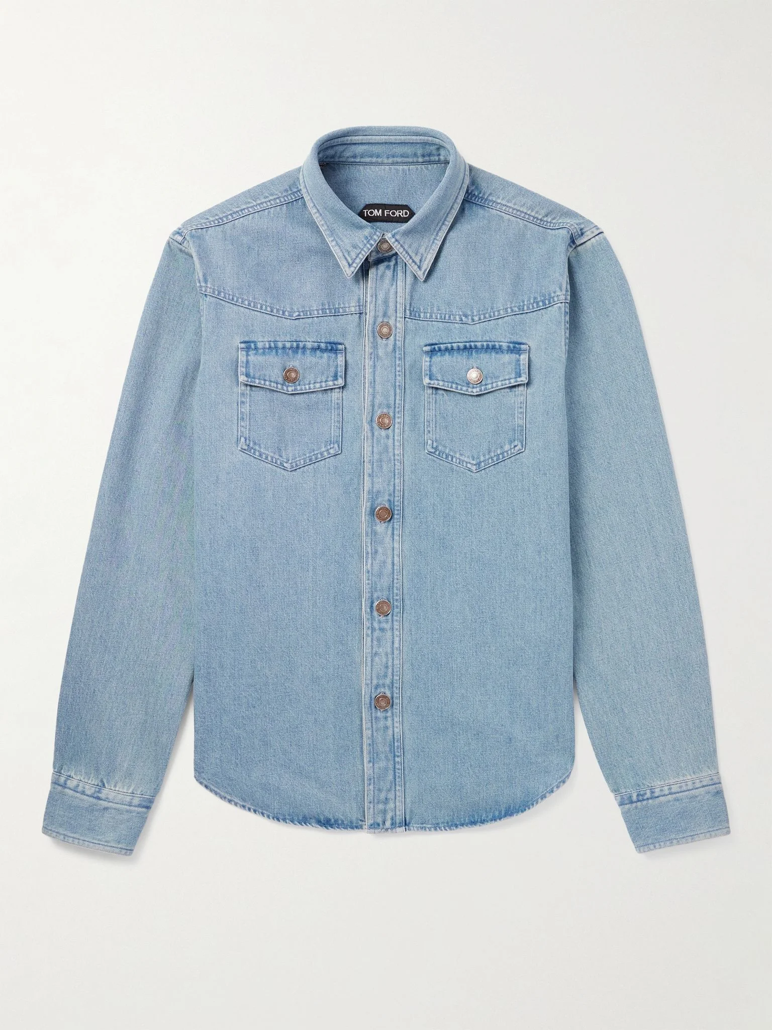 There are always plenty of refined Western styles in TOM FORD’s collections. This overshirt is made from washed-denim and has traditional details, such as a panelled yoke and flap pockets. Size & Fit - Fits true to size. Take your normal size - Designed for a slim fit - Mid-weight, non-stretchy fabric - Model is shown wearing an EU 39 (UK/US 15.5) - Model measures: chest 38"/ 96cm, height 6'0"/ 183cm Details & Care - Light-blue washed-denim - Button fastenings - 100% cotton