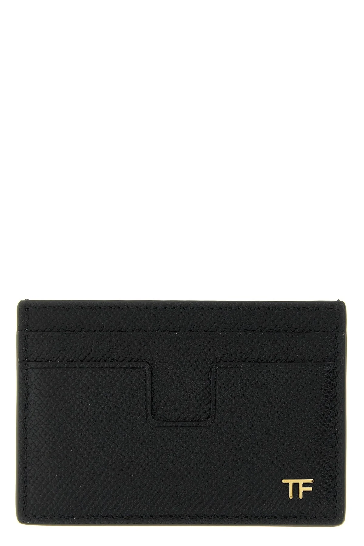 cod. YM232LCL081GNAA Small grain leather card holder with metal front logo detail with gold finish. Color: Black Size & Fit: 10 x 7 cm Composition: 100% calfskin leather (Bos Taurus) Made in: Italy
