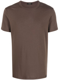 solid-color crew-neck T-shirt brown stretch-cotton crew neck short sleeves straight hem Imported Composition Cotton 95%, Elastane 5% SIZE & FIT Model measurements Height 6 ft 2 in(1.87 m) Bust/Chest 38.18 in(97 cm) Hips 36.61 in(93 cm) Waist 29.13 in(74 cm) Measurement CHEST 35.82 in(91 cm) SLEEVE LENGTH 7.08 in(18 cm) LENGTH 26.37 in(67 cm) Shoulder Width 15.74 in(40 cm) FittingInformation This piece fits true to size. We recommend you get your regular size Cut for a slim fit Made with a mid-weight stretch fabric Washing instructions Machine Wash