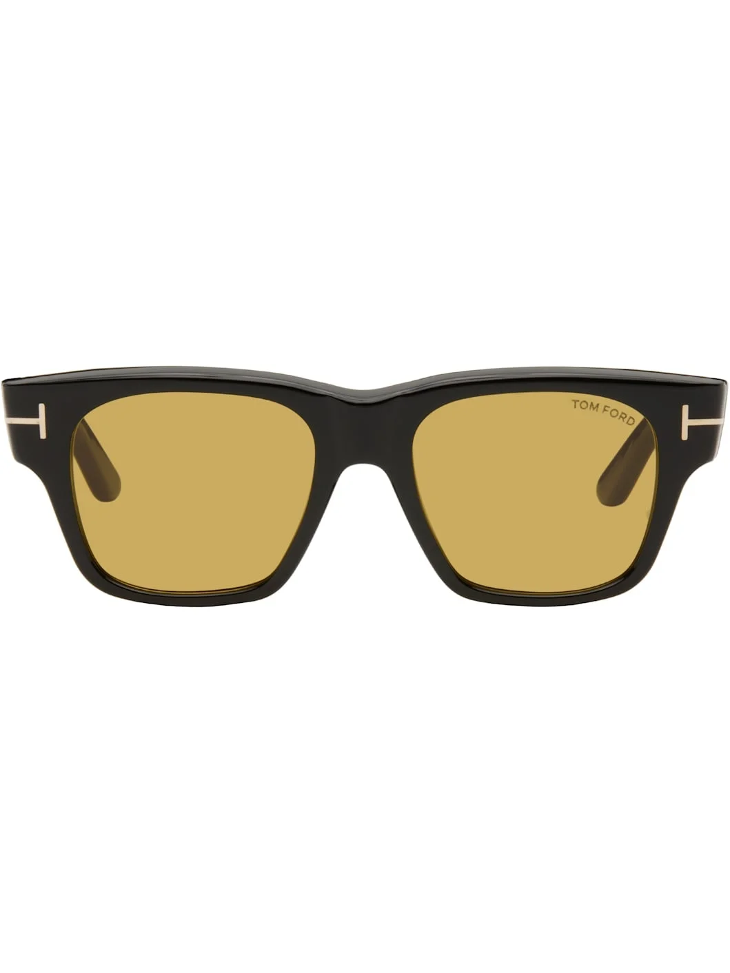 Square acetate-frame sunglasses · Brown lenses · 100% UVA/UVB protection · Integrated nose pads · Inset logo hardware at hinges · Logo plaque at temple tips · Includes case · Size: 53.19 145 Supplier color: Black Acetate. Made in Italy 252076M134011