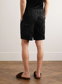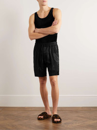 TOM FORD's shorts are a tropical-inspired style you can get away with wearing in the city, too. They're cut from satin that's jacquard-woven with tonal palm fronds and have a comfortable elasticated drawstring waistband. Size & Fit - Fits true to size. Take your normal size - Regular-straight leg, mid-rise style - Elasticated at the waist - Lightweight, slightly stretchy fabric - Model is shown wearing a 30 - Model measures: waist size 30, height 6'2"/ 188cm Details & Care - Black satin - 100% viscose - Dry clean - Made in Italy