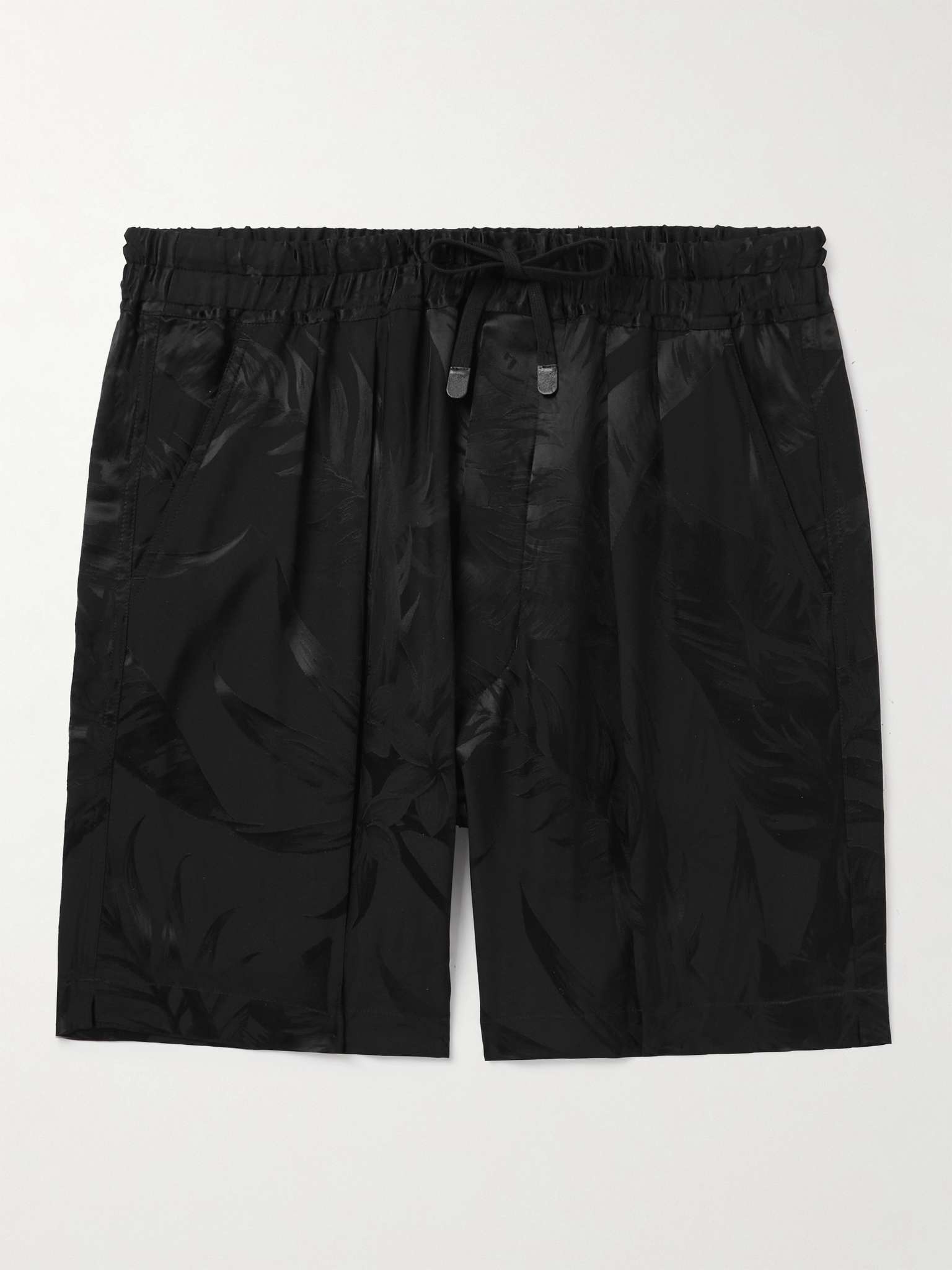 Straight-Leg Floral-Jacquard Satin Drawstring Shorts