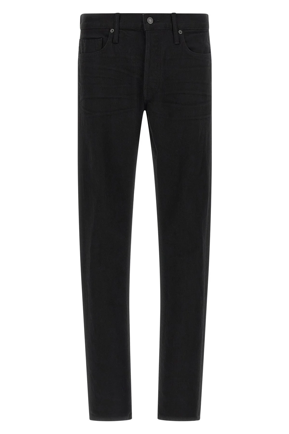 cod. DPH001DMC084NAB Garment-dyed selvedge stretch denim jeans with straight leg, front button closure, five pockets, tone-on-tone suede logo tag at the back. Color: Black Size & Fit: true to size fit Composition: 98% cotton 2% polyurethane Made in: United States