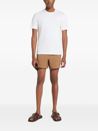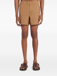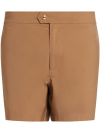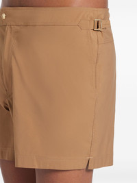 straight-leg shorts Highlights - Almond beige - Front press-stud and zip fastening - Adjustable side straps - Short side slits - Thigh-length Made in Italy Composition Outer: Polyester 100% Lining: Polyester 100%, Polyamide 90%, Spandex/Elastane 10%
