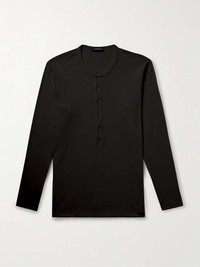 The better the quality of your T-shirt, the better you look and feel – so investing in this TOM FORD Henley is a win-win. It's been made in Italy from soft, lightweight stretch-cotton jersey and has side slits for a more comfortable fit. Size & Fit - Fits true to size. Take your normal size - Those with broad shoulders may wish to take the next size up - Designed for a relaxed fit - Lightweight, stretchy fabric - Model is shown wearing a M - Model measures: chest 38"/ 96cm, height 6'1"/ 185cm Details & Care - Black stretch-cotton jersey - Button fastenings - 95% cotton, 5% elastane - Machine wash