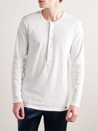 Stretch-Cotton Jersey Henley Pyjama T-Shirt