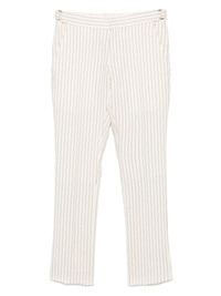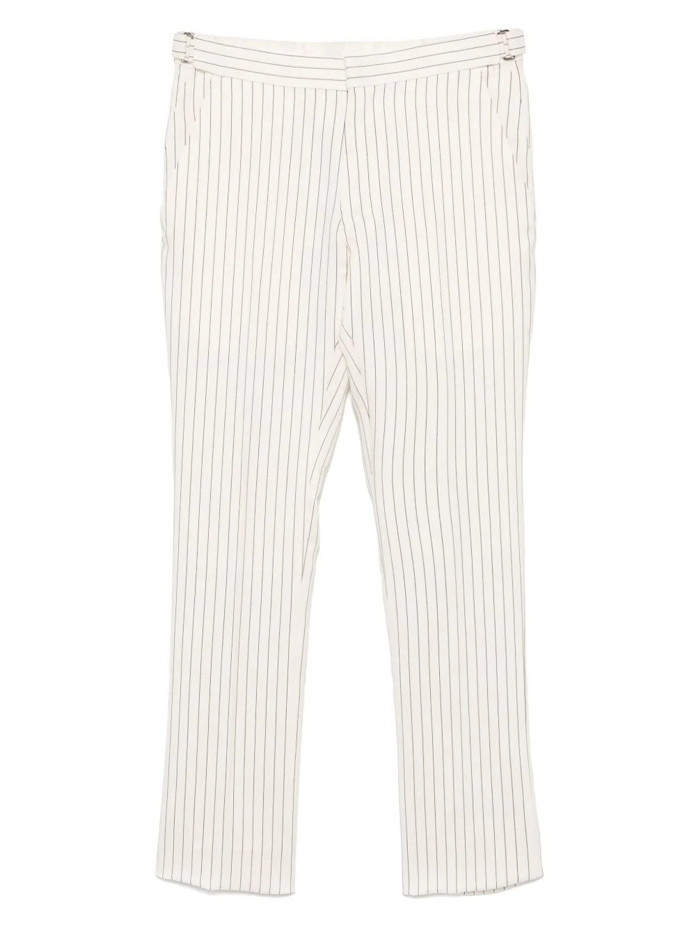 striped trousers Highlights - Light beige - Concealed front button, hook and zip fastening - Waist tabs - Two side inset pockets - Two rear button-fastening jetted pockets Made in Italy Composition Outer: Wool 77%, Silk 23% Lining: Cupro 100%, Cotton 70%, Viscose 20% SIZE & FIT Model measurements Height 6 ft 2 in(1.87 m) Bust/Chest 36.22 in(92 cm) Hips 37 in(94 cm) Waist 27.95 in(71 cm) FittingInformation Designed for a slim fit, offering a comfortable fit that sits just away from the leg The unfinished hems allow for the length to be altered Made from a midweight non-stretch fabric, this piece offers minimal elasticity when worn