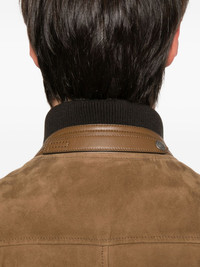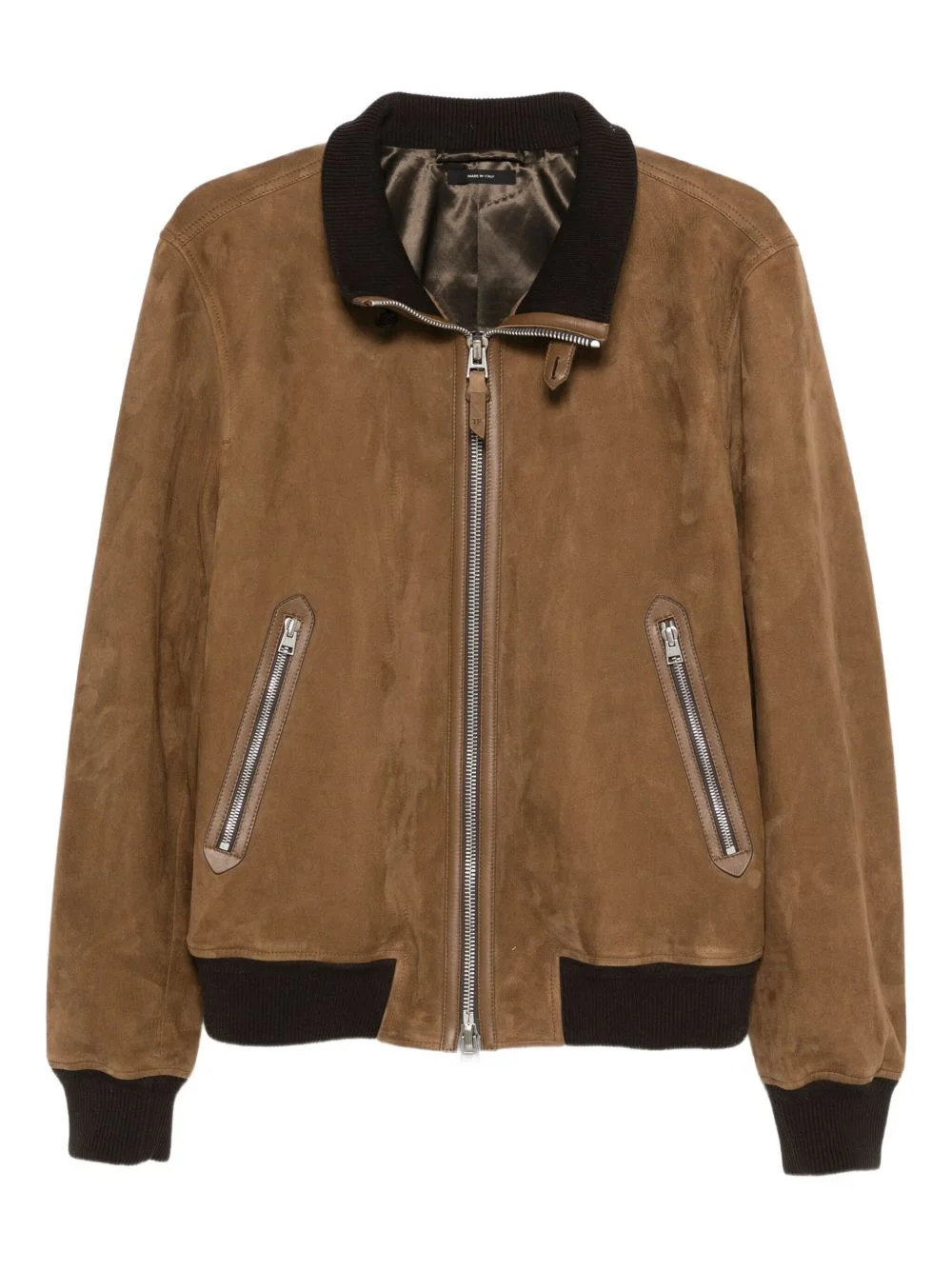 suede bomber jacket Highlights - Light brown - Front two-way zip fastening - Two side zip-fastening pockets - Ribbed trim Made in Italy Composition Lining: Cotton 56%, Viscose 44% Outer: Lambskin 100% SIZE & FIT Model measurements Height 6 ft 2 in(1.87 m) Bust/Chest 37.79 in(96 cm) Hips 37.79 in(96 cm) Waist 30.31 in(77 cm) FittingInformation Designed for a regular fit, allowing for a comfortably loose fit throughout the body The ribbed hem offers a close, comfortable fit Soft leather has a supple and smooth construction offering some flexibility