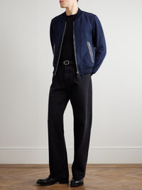 With Haider Ackermann at the helm, TOM FORD has embraced "the morning after" by relaxing the codes of its namesake founder. This bomber jacket is cut in a slouchy shape from suede with leather along the pockets and placket and is finished with ribbed edges. Size & Fit - Fits true to size. Take your normal size - Designed for a regular fit - Ribbed hem - Supple, non-stretchy suede - Model is shown wearing an IT 50 - Model measures: chest 38"/ 96cm, height 6'2"/ 188cm Details & Care - Indigo suede - Two-way zip fastening - 100% suede (Lamb); lining: 56% cotton, 44% viscose - Specialist clean