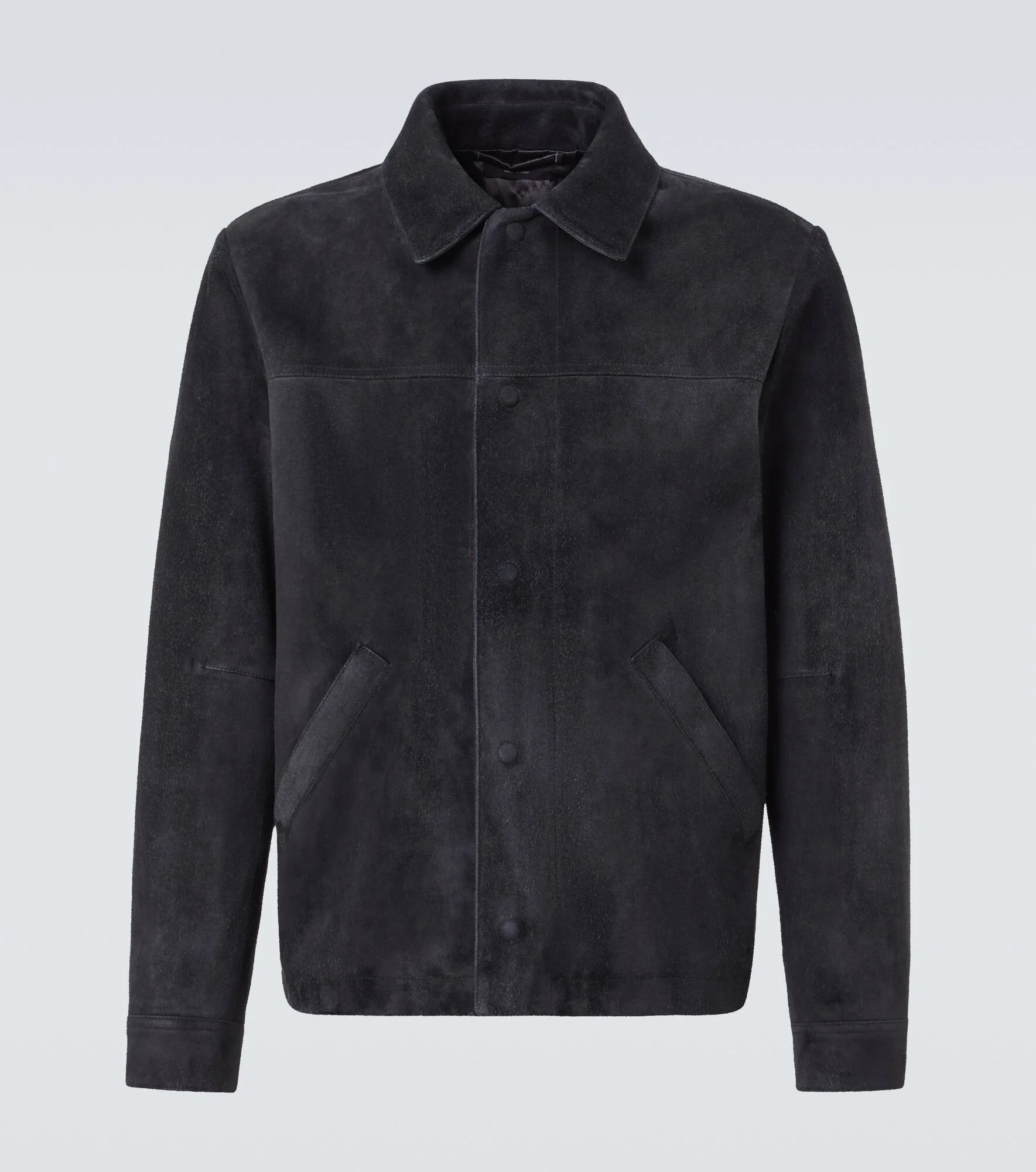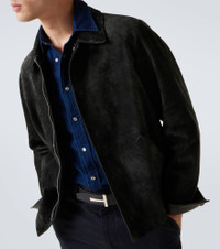 Tom Ford channels bold refinement through immaculate craftsmanship and commanding design. Crafted from soft suede, this jacket features a classic collar, slant pockets, and snap-buttoned front closure. Product Details - Material: 100% leather (suede) - Care instructions: specialist clean - Made in Italy - Designer color name: Shadow - Item color: blue - Lining: 56% cotton, 44% viscose - Sleeve lining: 61% cupro, 39% viscose - Pocket lining: 100% cotton - Contains non-textile parts of animal origin - Closure: two-way zipped front, snap-buttoned front - Pockets: slant pockets, internal pocket - Cuff: buttoned - Collar: classic (Straight point) - Includes: dust bag - Item number: P01095328 Size & Fit - True to size - For a looser fit, we recommend taking one size up - Slim fit - Non-stretchy fabric - Falls below the hip - The model in the picture is 185cm-6'1" and wearing a size IT 50