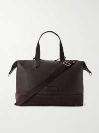 Suede-Trimmed Full-Grain Leather Weekend Bag Brown