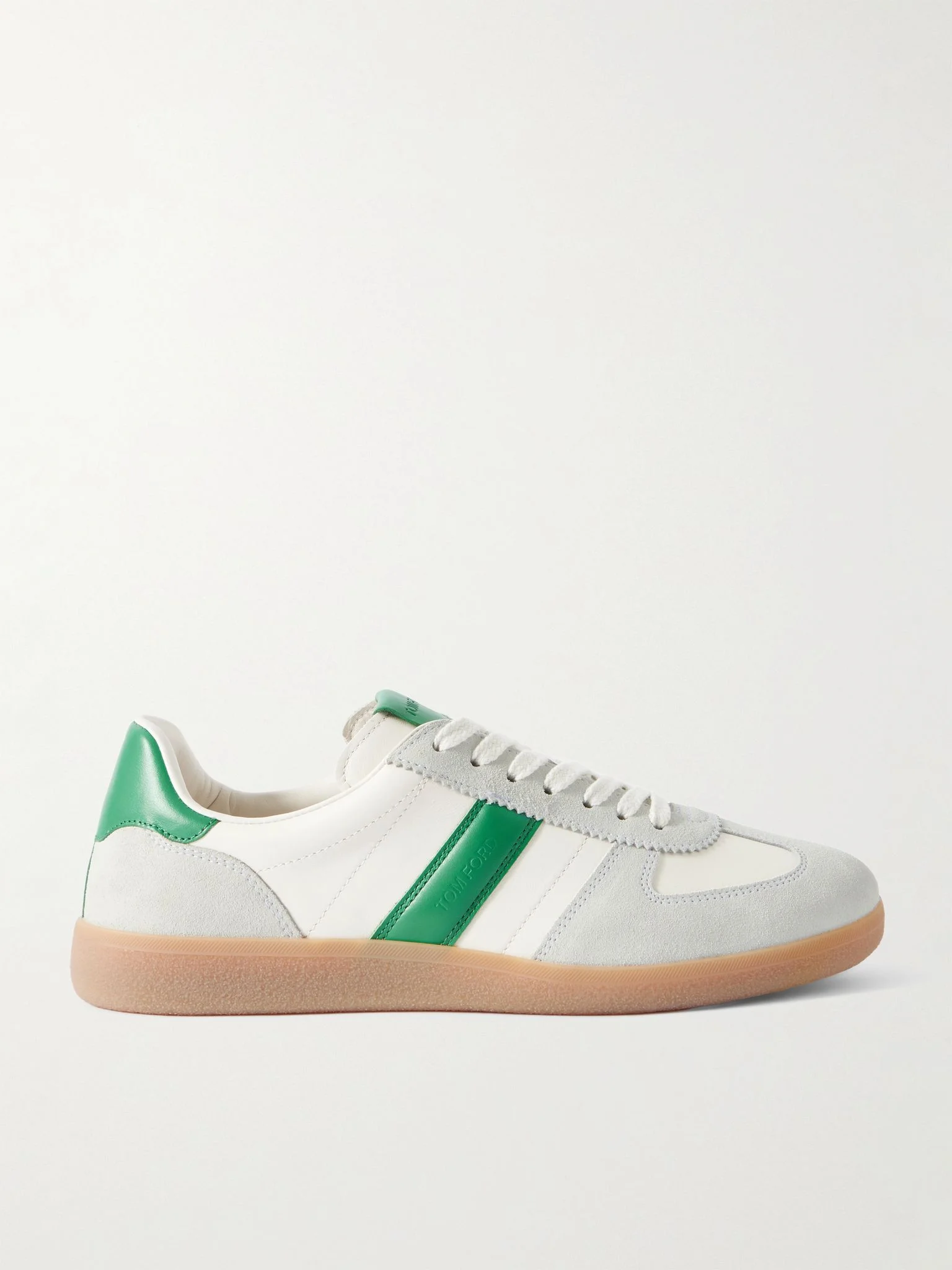 TOM FORD's leather sneakers recall classic tennis styles, which always read smart and cool. They've been made in Italy with suede trims and retro-inspired gum-rubber soles. Size & Fit - Fits true to size. Take your normal size - European sizing Details & Care - White and green leather (Calf), light-grey suede (Sheep) - Lace-up - Style number: J1584-LCL457N5W035