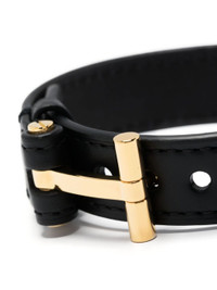 black calf leather signature T-shaped hinge detail punched holes adjustable fit polished-effect gold-tone hardware hinge-pin fastening Size & Fit Model Measurements: Height: 1.86 m Bust/Chest: 90.0 cm Hips: 88.0 cm Waist: 69.0 cm Model wears size OS Fabric and Care Designer Style ID: JM002LCL008G Designer Colour: 1N001 BLACK Composition: Calf leather 100%, Metal 100%Made in Italy