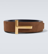 The T Icon belt from Tom Ford is a refined addition to your accessories collection. Crafted from leather, the reversible style is complete with the namesake gold-toned buckle. Product Details - Material: 100% calf leather - Care instructions: specialist clean - Made in Spain - Designer color name: Olive - Item color: brown - Item number: P01042733 Size & Fit - Width 3cm-1" - Buckle width 3.5cm-1.5"